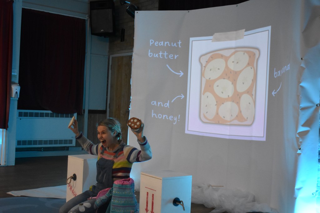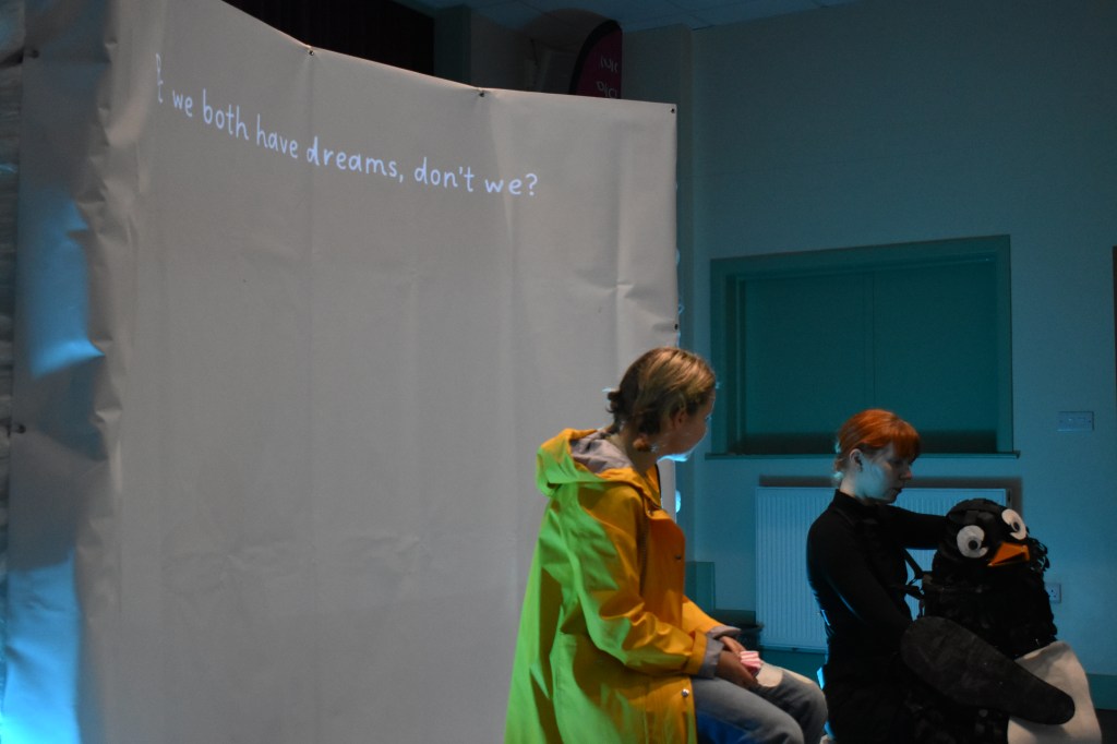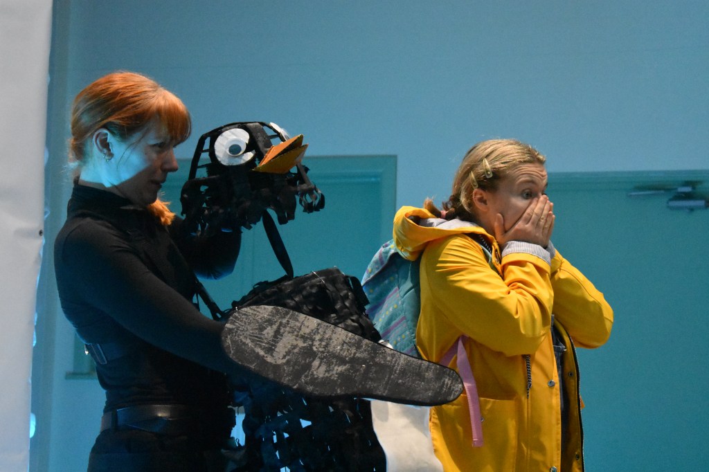 “The star of the show has to be the puppetry penguin operated by Dales. They talk, interact with the audience, and converse with Georgia. I thought they were enchanting and cheeky.